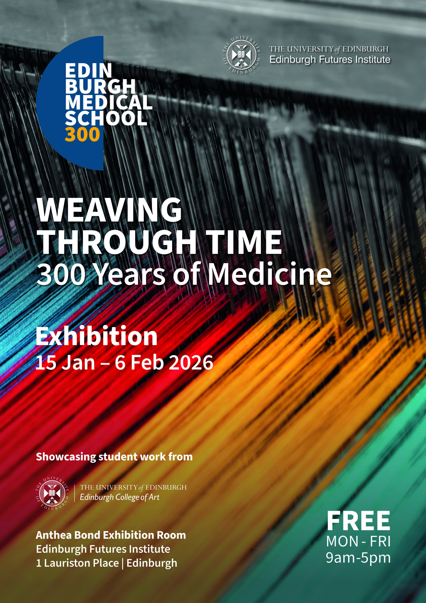 Following a student competition open to all art and design students within Edinburgh College of Art, a commemorative tartan has been chosen to represent 300 years of Edinburgh Medical School - past, present and future. Students were invited to weave the story of Edinburgh Medical School into a contemporary design that acknowledges our past whilst demonstrating our enduring commitment to a compassionate, collaborative and inclusive future.